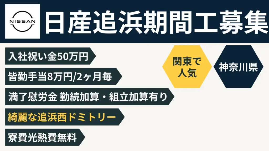 日産追浜期間工は神奈川で稼げる人気の期間工です。